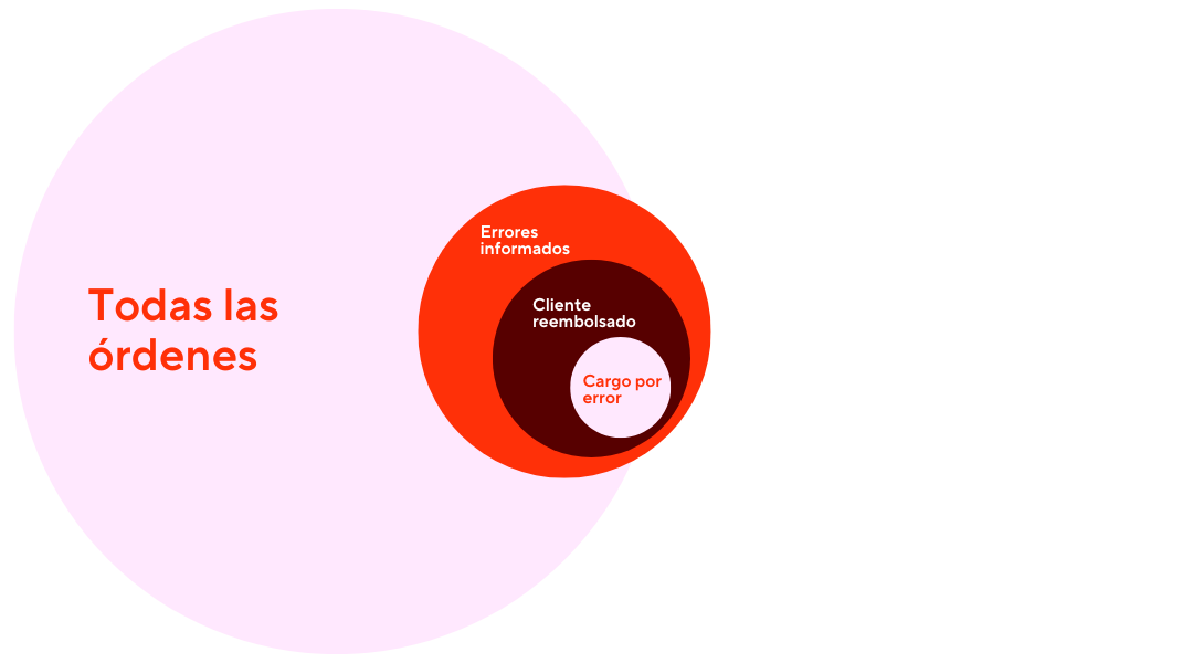 Cargo por error emitido si corresponde: si el error es responsabilidad de la tienda, esta recibe un cargo por error. De lo contrario, no se te cobrará.