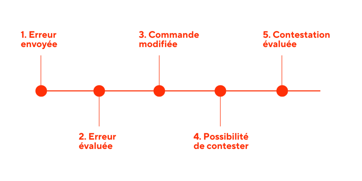 Si vous souhaitez contester des frais erronés, il est important d’agir rapidement pour obtenir un remboursement. Si vous pensez qu’une erreur n’est pas de votre faute et que ces frais n’auraient pas dû vous être facturés, vous pouvez contester les frais d’erreur dans le Portail commerçant. Si des rapports de commande manquants, incorrects ou erronés sont identifiés comme frauduleux, aucuns frais ne vous seront facturés.