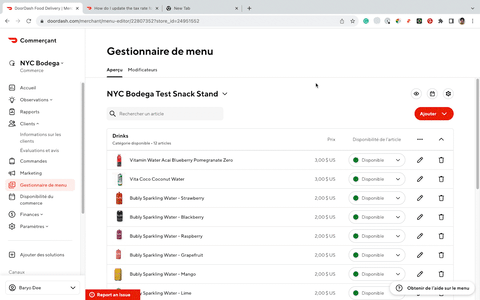 Pour modifier les prix de votre menu DoorDash, suivez les étapes ci-dessous :